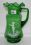Green glass vase with handle and frilled top. Boy motif. 235 mm