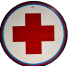 Red, yellow, green on white. 3'x3'. Double sided. Rough to both sides, some rust holes