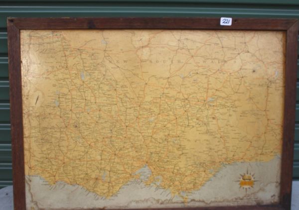 Golden Fleece map of Vic. Framed. Some water stains to the edges . Fair