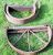 Gold white red on green