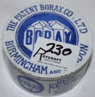 Pot lid and base Blue transfer BORAX Health, Utility, Purity, Safety. 8cms diameter. Small ding to inner lip with some minor marks.GC