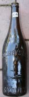 36 cms tall, amber.  Resch's Limited, Sydney.  Lion on barrel tm.  Rare in this colour.  Needs bit of clean inside.  Pit mark at back base.  Few minor marks, VGC
