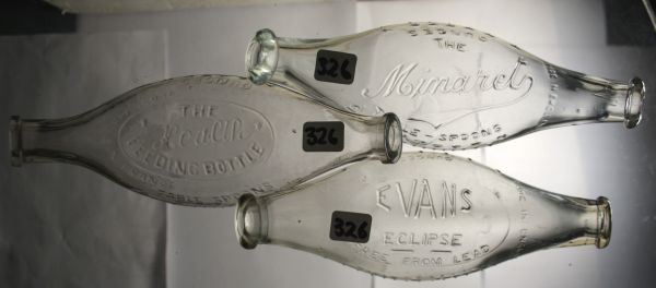One banana shape - The Minaret;  Two boat shape - The Health; The Feeding Bottle.  Scuffed and marked. VGC