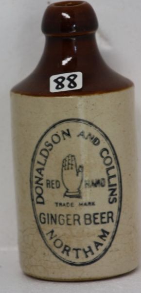 Brown top DBT.  Donaldson and Collins, Northam.  Hand tm.  Crazed, with light tip stain and some minor marks.  GC