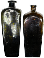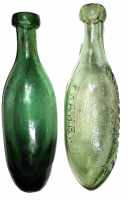 Wright & Pannifex,  Prahran.  Coat of Arms tm, nibbley around lip.  Other is early variety dark green glass.  Full of air bubbles VGC