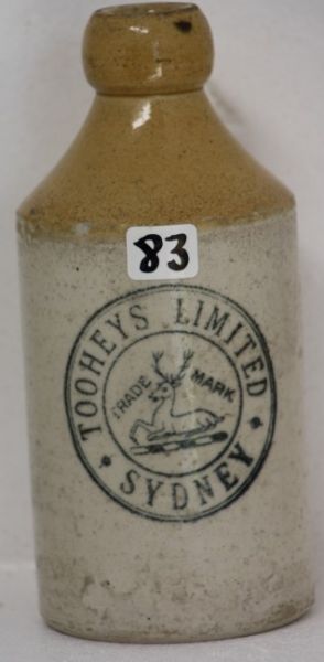 Two tone DBT.  Tooheys Limited, Sydney.  Deer tm.  Minor glaze flake to reverse lip with two minor hairline cracks to inner lip and glaze wear  around lip.  Small glaze flake to front shoulder.  Light tip staining and wear.  GC