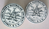 All white, blue tip, dump cork seal.  Bell tm.,  North Fitzroy.  Some wear to top of lip.  Few minor marks, GC