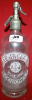 Soda Syphon Etched, New South Wales Aerated Waters Co, Newcastle. Icecream cone T/M to back. Moore metal top, Few scattered dings and marks with some bruising around base. GC