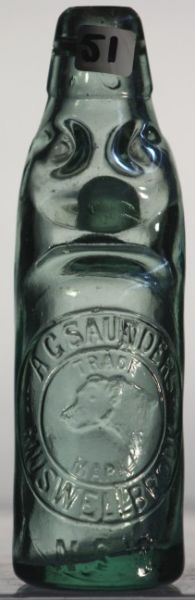 5-7 oz., four teardrops.  A.G.Saunders, Mussellbrook, NSW.  Dog's head tm.  Minor chip to front inner lip.  Some minor marks.  VGC