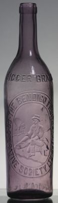 26 oz amethyst sauce.  The Bendigo Fruit Grower's Society Ltd.  Also around shoulder it is embossed Digger Brand, Bendigo.  Digger panning gold tm.  Few minor marks.  Brilliant bottle. VGC