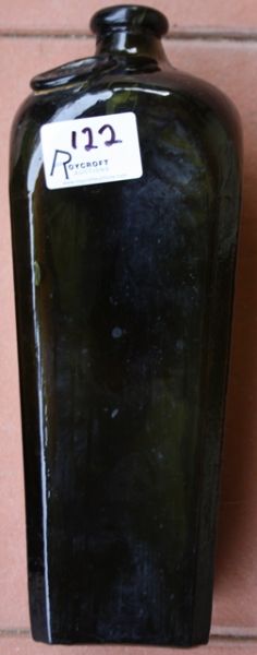 Four piece mould, black glass.  Applied seal to shoulder embossed  Hollander, with two people. Few minor marks, VGC