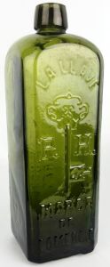 Green glass.  L.A.Llave:Peters Hermano, Buenos Aires.  Pictorial tm ofkey.  Early applied top variety.  VGC