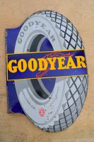 Double sided shaped post mount with pictorial of Goodyear tyre and the flying boot Scattered dinging around edges with minor dinging to faces 2'10 x 1'10