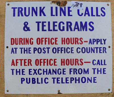 Enamel sign - Trunk Line Calls & Telegrams, etc