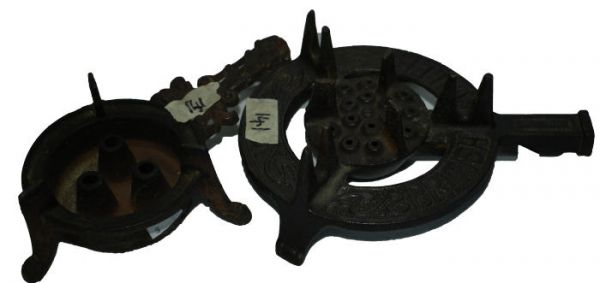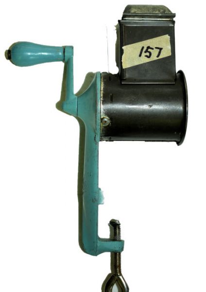 Five kitchenalia pieces, ice crusher, lemon squeezer