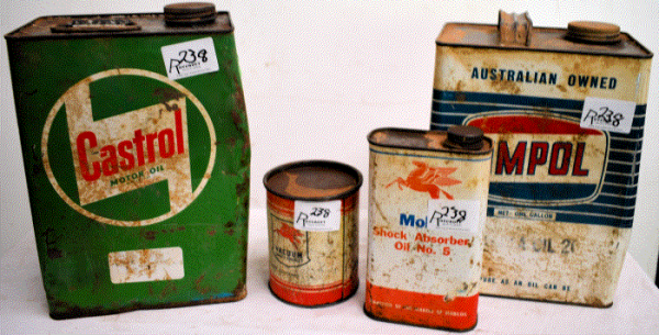 Also grease can Mobilgrease and Mobiloil Shock Absorber Fluid, all fair cond