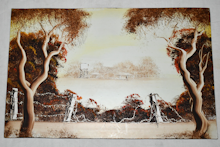 Oil painting Gum trees & farmhouse. V Scheckwyk