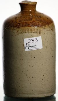 Quarter gal two tone. P. Hayes & Co., Wine & Spirit Merchants, Bridge Street, Sandhurst. Crack to shoulder and top of body on right hand side. Shows well.