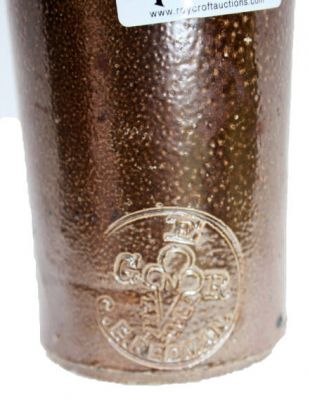 Dump blob top all tan.  Wear to top of lip.  Unglazed circle below blob top.  VGC