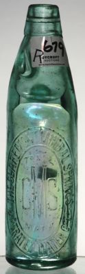 Two tear drops, 13 oz. The Claremont Mineral Springs and Aerated Waters (WA) Initials tm. BGW Glass Works, maker. Lightly tip stained with scattering of minor marks. Opalescent inside. GC