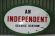 An Independant Service Station.  Red, black, green and white.  Scattered dings anda light crease.  Few minor scuffs and marks.  3'5"x2''3" oval.  90%.  SOLD $525