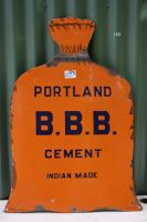 BBB Portland Cement. Shape of bag. Blue on orange. Creased on neck, light dings around edge. 1'x6"x2'4" 90%. SOLD $140