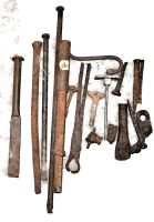Vulcan Sales and Service. Blue on white. Blacksmith trade mark. Few minor marks. 4'x1'6". 95%. SOLD $200
