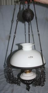 Cast Iron Hanger Light, Milk glass shade & Bowl