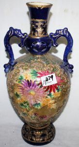 Large Blue Vase with Floral Decoration