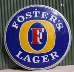 Two pieces, Fosters Lager. Yellow, red, white on blue. Few scuffs and marks 5' diameter 95%. SOLD $300