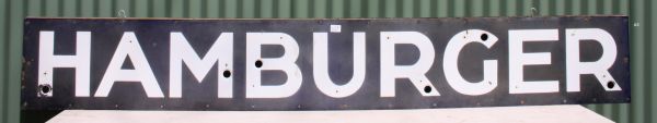 D/S Hamburgers. Black on white. 8'x1'. Good condition. SOLD $275