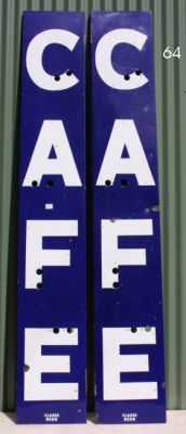 Cafe (incomplete neon sign). White on blue. 7'10"x1'3". Few marks. 95%. SOLD $725