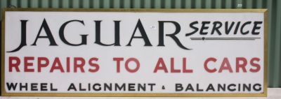 Jaguar Service. Black and red on white. Crack to one corner of acrylic. 6'x2'. Good condition. SOLD $500