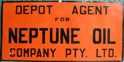 Depot, Agent for Neptune Oil Company.  Orange and black.  Fully restored by John.  6'x3'.  95+%