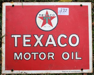 (Part sign).  Red, black on white.  1'6"x11".  Dinged round top  and heavily dinged to base