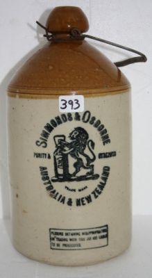 Simmonds & Osborne, Australia & New Zealand. Lion and demijohn tm. Small 'pop out' to Australia. Few minor marks. VGC