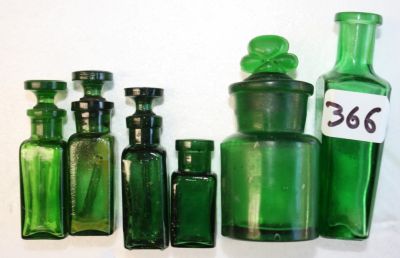 Two goldfield oils - Christmas Tree and a fluted oil, both tip stained. GC. Third bottle is a small dimple and the fourth 5 oz Pioneer. VGC