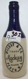 ChS, crown seal, blue top.  Mackay & Co., Perth, WA.  Trade mark on front 'Mackay' in script .  Mackay also on reverse.  Some repair to role of lip.