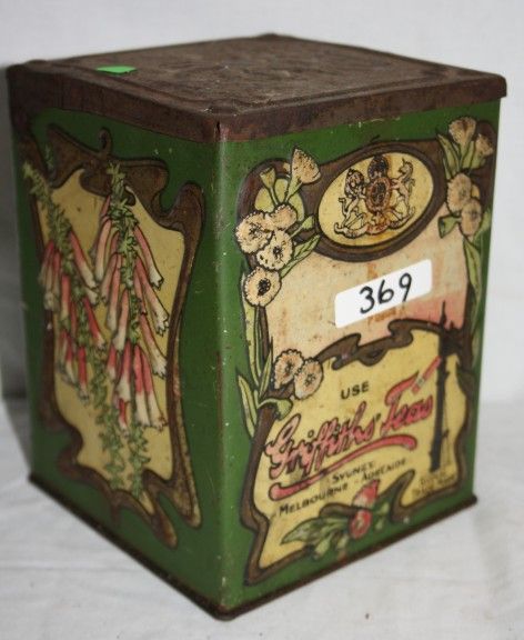 Griffith's Bros Tea, featuring Aust flowers.  Showing some rust, 80%