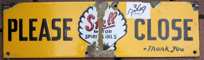 .....Please Close.  Thank You.  Red, black on yellow.  Crease across centre, dings to edges.  33x9.  80%