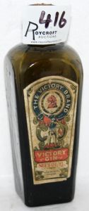 Labelled.  Victory Gin.  Feso & Co.Ld., Sydney.  Man and lion's head tm.  Some discolouring to label,.  VGC