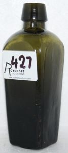 Early,  Black and White, with picture of dogs and bottle.  Some staining and wear, 80%