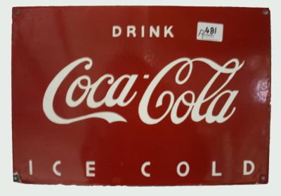 White on blue.  Dinged and rusted around edge, has been lacquered. 51x31.  85%