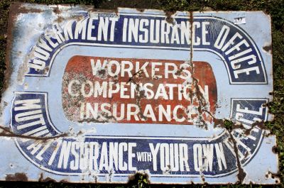 Durabestos Sold Here, with pictorial hanging sheet of product. Red black on white, bits surface rust scuffed and marked 91 x 61